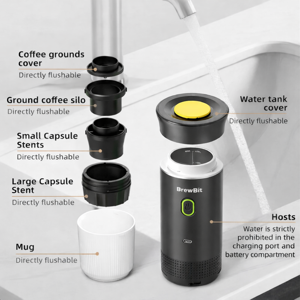 BrewBit Portable Espresso Machine is the only choice for coffee lovers who want quality and convenience without the ongoing cost of takeaway coffee. Not only does it save money in the long run, but it also gives you full control over your brew-anytime, anywhere. BrewBit is compatible with ground coffee as well as widely recognized small and large capsules. Including Nespresso Original, Nescafé, L’OR, Starbucks, Tuatahi Coffee and many more. Whether you’re at work, traveling, or outdoors, you can enjoy fresh, barista-style coffee without waiting in line or compromising on taste.